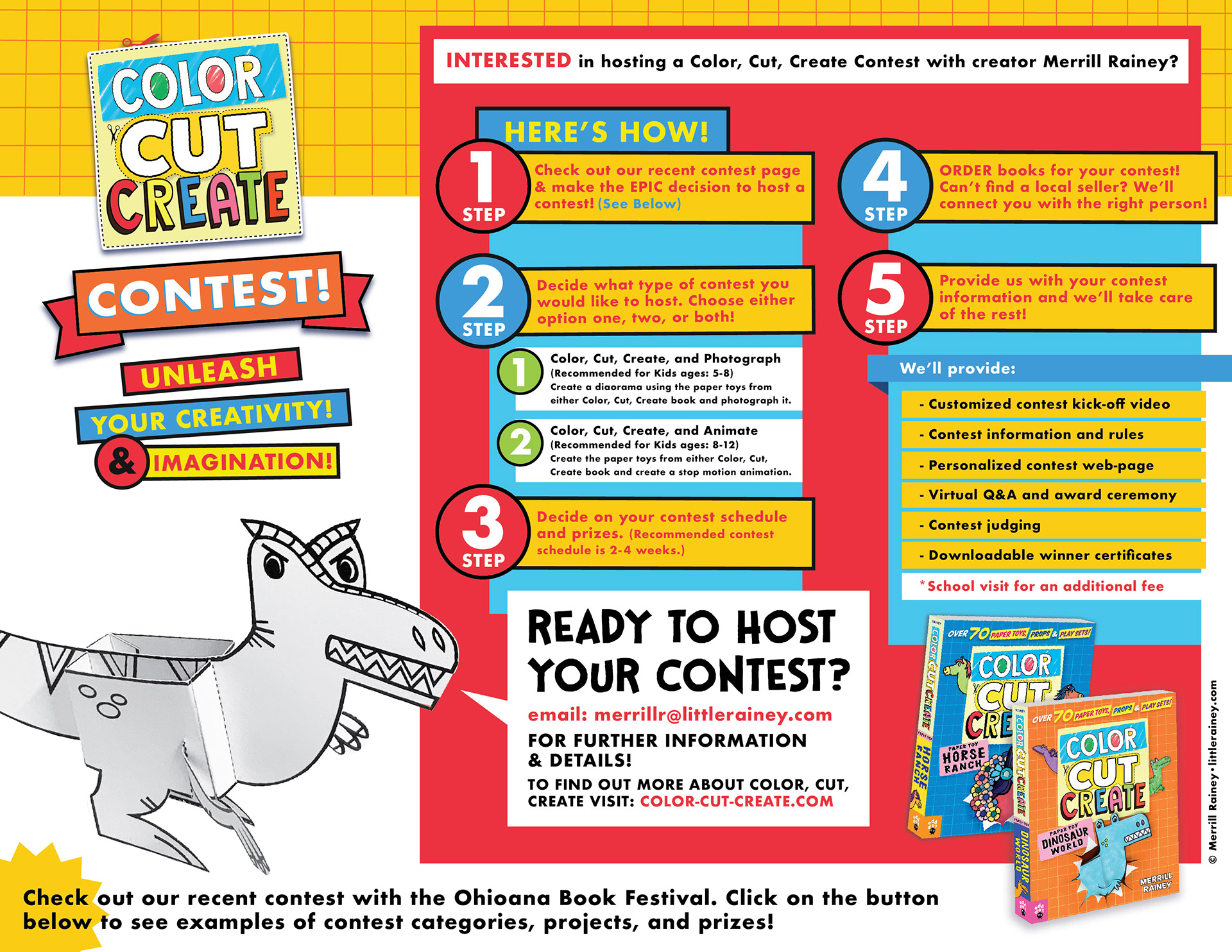 Thank you for your interest in hosting a Color, Cut, Create Contest! I will get back to you as soon as I can! Creatively, Merrill Rainey
